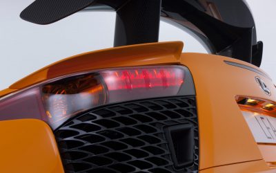To improve track driving even further, the aerodynamic performance of the LFA with the Nürburgring package will be modified through revisions and additions to several key carbon fibre reinforced plastic components. Combining to offer improved high speed downforce, these modifications include a larger front spoiler, fin-type side spoilers, canard fin, and a fixed rear wing.